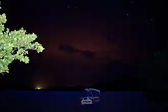 The bright blue hues produced by the microorganisms during nights of very little moonlight or new moon attracts tourists to the bio bay.[7] It is one of the three bio bays in Puerto Rico; the other two are Laguna Grande in Fajardo and La Parguera in Lajas.[8] The bay and its surrounding mangrove forest are protected by the Vieques Bioluminescent Bay Natural Reserve and no swimming is allowed. Guided tours allow visitors to kayak in the bay and observe the bioluminescence.[9] The bio bay is located near the beach community of Esperanza, between the barrios of Puerto Ferro and Puerto Real in Vieques, Puerto Rico.
