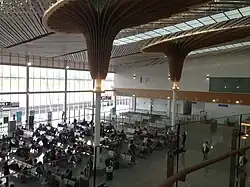 To meet the growing air transportation demands of Puerto Princesa and the province of Palawan, in 2014, the Department of Transportation (DOTr) awarded an $82.9-million (₱2.616 billion) contract to the joint venture of Kumho Industrial Co. Ltd. and GS Engineering & Construction for the construction of new passenger terminal and cargo terminal building, a new apron, connecting taxiways, new state-of-the-art air navigation system, and other support facilities in compliance with the international civil aviation standards set by the International Civil Aviation Organization (ICAO).[5] The new terminal was officially inaugurated on May 3, 2017, and opened for commercial operations on the next day.[6]