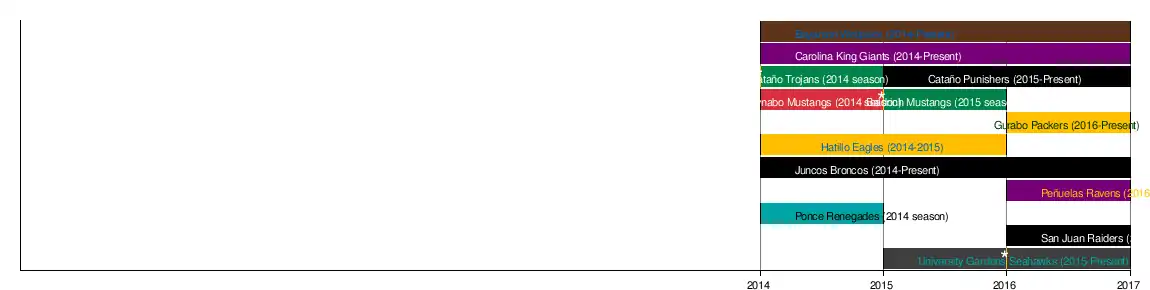 | Ponce Renegades † | Ponce, PR | - | 2014 | |||