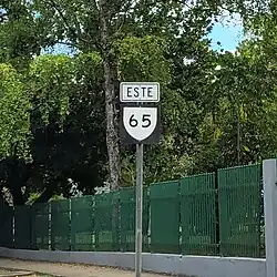 Puerto Rico Highway 65 (PR-65) is a short highway connecting Puerto Rico Highway PR-239, also locally known as Alfonso Valdés Cobián Boulevard (formerly known as Calle Post and PR-2R) near University of Puerto Rico at Mayagüez, to Puerto Rico Highway 106.[2] It has not an intersection to the main highway PR-2, but can be accessed quickly going west of the alt route. It is also the main highway to the Palacio de Recreación y Deportes (Sports and Recreation Palace) and to the Parque de los Próceres.[3][4]