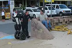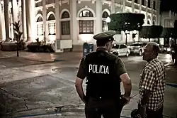 Police officer talking to a man in Mayagüez