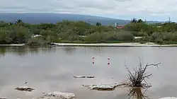 Several lagoons were removed over the course of urbanization from 1960 to 2003.[5] 80% of the flamingo population in the Galápagos Islands live in the lagoons near Puerto Villamil.[6] Kikuyu grass was introduced in the 1950s and threatens to turn the lagoons near Puerto Villamil into marshes.[7]