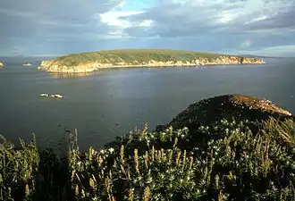 ![]() Puffin Island in the foreground, looking to Chamisso Island | |