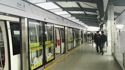 Puhang Road (Chinese: 浦航路; pinyin: Pǔháng Lù) is a station on the Pujiang line of the Shanghai Metro. The station is located just north of the intersection of Sanlu Highway and Puhang Road,[1] between Minrui Road and Dongchengyi Road. It began passenger trial operations with the rest of the Pujiang line on March 31, 2018.[3][4]