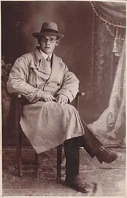 In 1928, having gotten permission from President Antanas Smetona to travel, Andriušis visited numerous countries, including Great Britain, France, Italy, Spain, and Morocco.[4][3] He graduated in 1932.[5] It was at this point that he began to translate the works of Miguel de Cervantes. From 1931 to 1934 Andriušis acted in the Stedra theater founded by Balys Sruoga. From 1934 to 1939 he worked on various newspapers in Kaunas and Klaipėda. In total, Andriušis published a few thousand articles, feuilletons, literary and theater reviews, travel logs, and popular descriptions of nature.[6] In 1938 he married Marija Chodauskaitė, with whom he had two sons and two daughters. He translated various books, including Roland Dorgelès's Wooden Crosses, and most famously, both parts of Cervantes's Don Quixote in 1942.[7][4]
