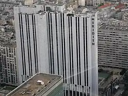 In addition to the offices located above the complex's mall, the hotel tower had its own corporate rental space. In the early stages of the project, it was announced that the lower floors of the hotel would house the European headquarters of Sheraton's parent company International Telephone and Telegraph.[25] However, no later reference to this could be found. In 1974, the project's architect Pierre Dufau moved his agency to the hotel tower, which was its final location until his death in 1985.[26][27][28] Upon Méridien's 1986 acquisition of the hotel, the chain set up its headquarters there until its 1994 sale to Forte Group, when its main offices moved to London, leaving a scaled down team in Paris.[29] Records indicate that Méridien France transferred its location to the Tour Montparnasse in 2010.[30]