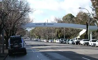 The school's footbridge allows pedestrians to safely cross heavily trafficked South Terrace