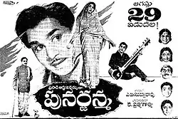 Punarjanma (transl. Rebirth) is a 1963 Indian Telugu-language drama film, produced by A. V. Subba Rao and directed by K. Pratyagatma. Based on the novel Patthar Ke Honth by Gulshan Nanda, it stars Akkineni Nageswara Rao and Krishna Kumari, with music composed by T. Chalapathi Rao. The film was remade in Hindi as Khilona (1970), in Tamil as Engirundho Vandhaal and in Malayalam as Amrithavaahini.[1]