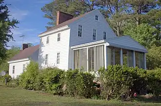 Puncheon Mill House, also known as Puncheon's Landing, is a historic home located at Pocomoke City, Somerset County, Maryland. It is a two-story, three-by-two-bay gable-front frame dwelling supported on a raised common bond brick foundation. It was built between 1810 and 1820, and is sheathed with beaded cypress weatherboards and covered with a medium-pitched wood shingle roof. The house was restored and expanded in the 1960s with the addition of a kitchen wing.[2]