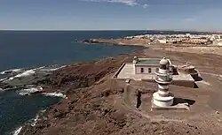 The Punta de Arinaga Lighthouse (Spanish: Faro de Punta de Arinaga) is an active lighthouse on the Spanish island of Gran Canaria in the Canary islands. The current lighthouse tower is the third to be constructed on the rocky headland of Punta Arinaga, near the town of the same name in the municipality of Agüimes.[1] Arinaga is on the south-east side of the island and marks the coastline between the Maspalomas lighthouse to the south and the Punta de Melenara lighthouse of Telde to the north.[1]