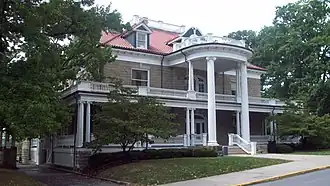 Purinton House is a historic home associated with the West Virginia University and located at Morgantown, Monongalia County, West Virginia. It was built in 1904, and is a 2+12-story masonry dwelling with Classical Revival and Colonial Revival style features. It features a large wraparound porch whose hip roof is supported by Ionic order columns. The porch roof is topped by a balustrade. The roof is topped by a balustraded deck and widow's walk. It served as the on-campus residence for university presidents from 1905 to 1967. On November 2, 1911, President William Howard Taft delivered the address "World Wide Speech," from the front porch of Purinton House.[2]
