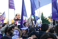 The movement declined after the successful campaign of the referendum of 15 June 2011, but, as of May 2016, its Facebook page is still active, counting more than 420,000 users.[2] In 2021-2022 the Purple People, together with members of the Sardines movement, organized some rallies against the candidacy of Silvio Berlusconi in the 2022 Italian Presidential election, though the protests were small and poorly attended.[3][4]