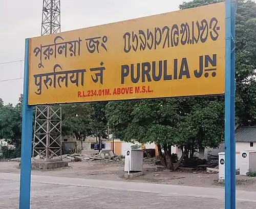 ![]() Purulia junction sign board in Bangla, Santali, Hindi and English | ||||||||||||||||