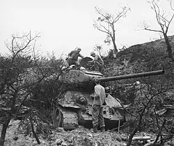 In the action of 20–21 September near Waegwan, the KPA lost heavily in tanks, as well as in other equipment and troops on both sides of the Naktong. In these two days the 24th Division counted 29 destroyed KPA tanks, but many of them undoubtedly had been destroyed earlier in August and September. According to KPA sources, the 203rd Regiment of the 105th Armored Division retreated to the west side of the Naktong with only nine tanks, and the 107th Regiment with only 14. Nevertheless, the KPA covered its retreat toward Kumch'on with tanks, self-propelled guns, antitank guns, and small groups of supporting riflemen.[1]: 557