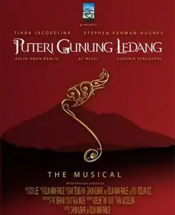 Tiara Jacquelina and Pat Ibrahim began discussing the idea of a musical version of the Princess of Gunung Ledang story during the development of the film, during which Pat began having meetings with Singaporean composer Dick Lee to discuss the idea. The critical and commercial success of the film became the deciding factor for pursuing a stage version. It was decided that the musical version would follow the storyline established by the film, due to audience's familiarity with it, but with a more contemporary feel in order to appeal to younger audience members.[1] Accordingly, the character of Gusti Putri, who was sombre and philosophical in the film, was reinterpreted as being younger and more playful in the stage version. Tiara said that the reinterpretation of the character was in part inspired by the success of her music single "Asmaradana", which was recorded for the film and became a hit among young Malaysian music fans, drawing their attention to the film itself.[1]