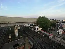 This suburban railway station consists of 2 Platforms (1 side platform and 1 island platform) which can fit an 24-coach express train.