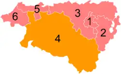 Results in Pyrénées-Atlantiques's six constituencies in 2012 : pink (PS), orange (R)