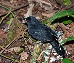 The white-shouldered fire-eye was described by the French ornithologist Louis Pierre Vieillot in 1818 and given the binomial name Turdus leucopterus.[3] The specific name is from the Ancient Greek leukopteros meaning "white-winged".[4] The current genus Pyriglena was introduced by the German ornithologist Jean Cabanis in 1847.[5] The species at times has been treated as conspecific with the fringe-backed fire-eye (P. atra) and what was at the time the white-backed fire-eye (P. leuconata); the latter has since been split into several species.[6][2]