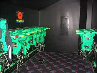 In 2000, Will Low purchased some of the assets of Q-ZAR calling it Q-ZAR World Wide. Low claimed ownership of the Q-ZAR trademark, but failed in a class-action lawsuit to force existing centers to pay a license fee to him. In 2002 Laser Light Entertainment, Inc. purchased the Concord, California, location (Which was shut down in August 2024).[2] In 2003, J. R. Robles purchased the Q-ZAR assets held by Jarvis Entertainment and formed the company Q-ZAR USA. Laser Light Entertainment, Inc. successfully completed the registration of the Q-ZAR trademark in 2008. This registration gives them control of the Q-ZAR trademark from 1999–present. In 2008 Laser Light Entertainment, Inc. also purchased the Q-ZAR assets of Low. Laser Light Entertainment, Inc. has been selling Q-ZAR equipment, Q-ZAR System Sales since 2003. Quasar in the UK, Ireland, Europe and Asia remains supported by Quasar UK (now Quasar Manufacturing LTD[3]). In 2001 Quasar Manufacturing Ltd (once Quasar UK) took over Q-ZAR and Quasar Trade Marks for UK, Ireland and Europe and in 2005 released a new version named Quasar Elite (Q-Zar Mark VI version) with revised software and hardware. In 2009 Quasar Manufacturing started testing Mark VII Wireless Q-Zar equipment. Laser Light Entertainment and Quasar Manufacturing made arrangements to distribute Quasar Elite Wireless in the United States (from the end of 2011 on), replacing previous equipment.