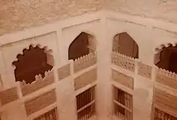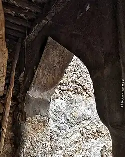 Qatif Castle was historically divided into four distinct neighborhoods: Al-Khan (southwest), Al-Zurayb (northwest), Al-Warsh (northeast), and Al-Sidra (southeast).[10][20] These areas were connected by narrow roads and dark alleys, with Al-Dhulami's alley in Al-Zurayb being the most prominent. Before the removal of the citadel wall, the castle was also surrounded by several other neighborhoods, including Al-Sharia, Bab Al-Shamal (the north gate), Al-Kuwaikib, Al-Madaris, Al-Dababiya, Al-Jarari, Al-Shuwaika, and Mias.[1]