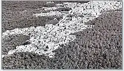 An aerial view showing the fortified houses and neighborhoods of Qatif Castle. The photo was taken in the 1950s.