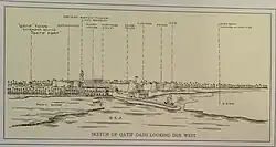 In his account of Qatif Castle, English traveler and historian William Belgrave referenced the observations of fellow traveler George Sadlier,[53] who had visited the city of Qatif. Belgrave described the castle's western gate as a high stone arch of elegant design. He noted that the structure was in a state of disrepair, with crumbling walls and towers flanking both sides. The city of Qatif itself was characterized by a dense population, and two cemeteries were situated in close proximity to the gate.[54]