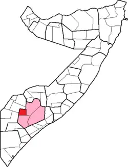 In January 2008, during the Ethiopian occupation of Somalia, insurgents from the Islamic Courts Union established a base and nearly took over the entire district.[1]