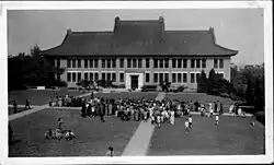 During the Nanjing Massacre, a refugee shelter was established on the university campus, and Qi was appointed its director. The shelter, located in one of the dormitories, accommodated over 30,000 refugees.[12] Despite its designation as part of the Safety Zone, the shelter was repeatedly entered by armed Japanese soldiers, who reportedly detained Chinese soldiers and policemen. They also abducted women, with multiple reports of sexual violence.[13] Residential buildings and stores on campus were looted and, in some cases, set on fire.