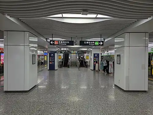 ![]() Platforms for Line 2 towards Chaoyang and Line 4 towards Puyan | |||||||||||||||||||||