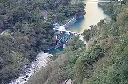 Qingshan Dam (traditional Chinese: 青山壩; simplified Chinese: 青山坝; Hanyu Pinyin: Qīngshān Bà; Tongyong Pinyin: Cingshan Bà; Wade–Giles: Ch'ing1-shan1 Pa4) is a concrete gravity forebay dam on the Dajia River in Heping District, Taichung, Taiwan. The dam is the second in a cascade of hydroelectric power plants along the Dajia River, and is located directly below the Techi Dam and upstream of the Kukuan Dam. The dam was built between 1964 and 1970 and stands 45 m (148 ft) high and 100 m (330 ft) long, storing up to 600,000 m3 (490 acre⋅ft) in its reservoir.[1]