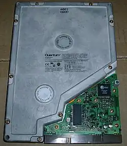 The second series was the Quantum Bigfoot CY series, introduced around December 1996.[10] Bigfoot CY drives shared the characteristics of a 3,600 RPM spindle speed and an ATA-2 interface connection. These drives had one to three 2.1 GB platters,[11] and were produced in capacities of 2.1 GB, 4.3 GB and 6.4 GB.[10][12] Their access time was advertised as being "as low as 12ms,"[12] and they had 128 KB of cache.[13] The suggested retail prices were $224, $310 and $395, respectively.[10] The largest drive of the CY series could transfer about 6 MB/sec from the platters when tested with hdparm -t in Linux.[14]