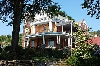 The Quapaw–Prospect Historic District is a predominantly residential historic district on the northwest side of Hot Springs, Arkansas. It covers a roughly nine-block stretch of Quapaw and Prospect Streets, from their junction in the east to Grand Avenue in the west, including properties on streets running between the two. The area was developed between about 1890 and 1950, and contains a cross-section of architectural styles popular in that period. Although Colonial Revival and Craftsman style houses dominate the area, it has a particularly fine collection of Queen Anne Victorians as well.[2]
