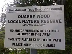 Quarry Wood is a small wooded area in Preston Park, Preston-on-Tees in County Durham, England. It was declared a Local Nature Reserve in 2004 by Stockton Borough Council.[1]