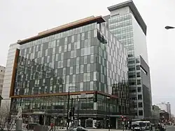 Completed in 2009, the Quartier Concordia project was the result of an architectural competition held by Concordia in 2001, the winning designers of which were those at the architectural firm Kuwabara Payne McKenna Blumberg Architects (KPMB), in joint-venture with Fichten Soiferman et Associés Architectes.[6][7] The project comprises a rehousing of three of Concordia's schools: Engineering, Computer Science (ENCS), Visual Arts (VA) and the John Molson School of Business (JMSB).[7] The architectural plans for this project are held at the Canadian Centre for Architecture.[6]