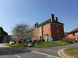 The facility has its origins in the Belvedere Union Workhouse which was designed by J. H. Morton and completed in 1884.[1] An infirmary was subsequently built on the west of the site.[1] It became the Burton Public Assistance Institution in 1930 and then joined the National Health Service as Burton District Hospital in 1948.[1][2] A redevelopment programme intended to consolidate all the town's medical facilities, including those previously delivered at the old Burton Infirmary in Duke Street, on the Belvedere Road site began in the 1970s.[3] The first phase was completed in 1972 and the second phase was completed in 1993.[4] The new facilities were opened by the Queen in December 1995[5] and, in recognition of this, the facility was renamed Queen's Hospital in 1996.[3]