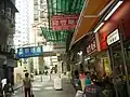 Tai Wong Street West (大王西街) is a pedestrian road that runs southwest from Johnston Road to Queen's Road East. About halfway along the road it is connected to Tai Wong Street East by the Tai Wong Street East Sitting out Area.[8] The street was originally called Ocean Boat Street, and was opened in 1910. It connects with Queen's Road East opposite Hung Shing Temple.[23] It derives its name from the temple, as "Tai Wong" is an alternate name for Hung Shing.[24]