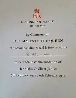 - ^ "Silver Jubilee awards". Commonwealth of Australia Gazette. 1 August 1977.