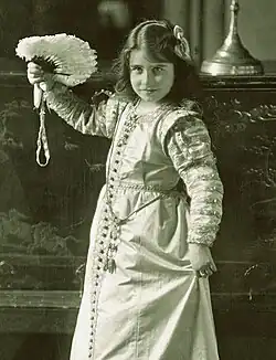 Elizabeth spent much of her childhood at St Paul's Walden and at Glamis Castle, the Earl's ancestral home in Scotland. She was educated at home by a governess until the age of eight, and was fond of field sports, ponies and dogs.[11] When she started school in London, she astonished her teachers by precociously beginning an essay with two Greek words from Xenophon's Anabasis. Her best subjects were literature and scripture. After returning to private education under a German Jewish governess, Käthe Kübler, she passed the Oxford Local Examination with distinction at age thirteen.[12]
