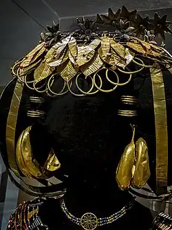 - ^ a b c Hafford, Brad (30 September 2014). "Gold Fit for a Queen (or) How to Wear a Headdress". Penn Museum.