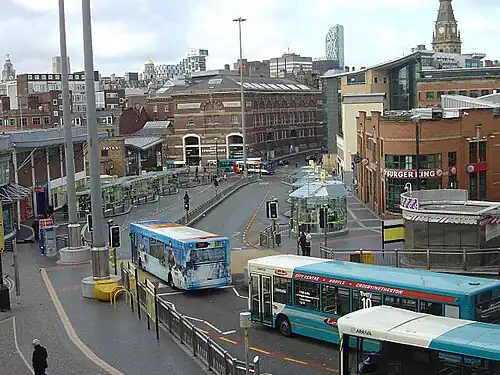Queen Square bus station serves the city of Liverpool, Merseyside, England. The bus station is owned and managed by Merseytravel.[1]
