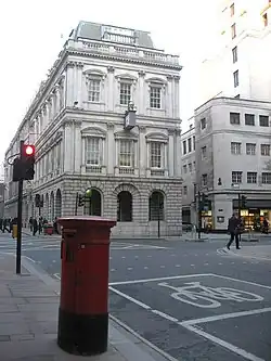 Queen Street is a street in the City of London which runs between Upper Thames Street at its southern end to Cheapside in the north. The thoroughfares of Queen Street and King Street (a northward continuation of Queen Street beyond Cheapside) were newly laid out, cutting across more ancient routes in the City, following the Great Fire of London in 1666; they were the only notable new streets following the fire's destruction of much of the City.[1]