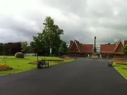 The park is popular with Crewe residents and features the largest lake in the area, which also has boats for hire. Other prominent features of the park include a Grade II listed Victorian clock tower,[5] two Grade II listed lodges at the entrance from Victoria Avenue,[6][7] a man-made waterfall, a large playground, and several statues and fountains. At the centre of the park is the Grade II listed Boer War Memorial.[8] Other memorials include one to the first Gulf War, and Verdun trees.[9]