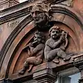 The carvings on the facade of the building are an example of the high quality of local sandstone carving, in particular that of prolific local sculptor William Flint.
