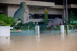 The Queensland Museum stands on the north side of Melbourne Street and southwest of the pedestrian Whale Mall. It is a seven-story building that houses four levels of public exhibition space, administrative and research offices, a library, and collections storage.[1]