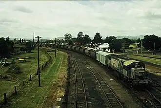 The 1550 class were the first locomotives in Queensland to be fitted with low noses. An initial order for 16 locomotives was followed by 11 that were financed by the Queensland Phosphate mining group. The second batch differed in having a lower roofline to give better clearance when operating under wires.[1][2][3][4]