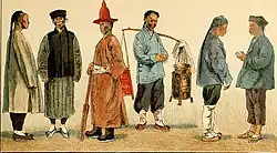 The queue was the only aspect of Manchu culture that the Qing forced on the common Han population. The Qing required people serving as officials to wear Manchu clothing, but allowed other Han civilians to continue wearing Hanfu (Han clothing). Nevertheless, most Han civilian men voluntarily adopted Manchu clothing[63][64] like Changshan of their own free will. Throughout the Qing dynasty Han women continued to wear Han clothing.[65]