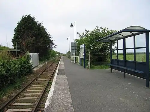 Quintrell Downs railway station (Cornish: Goonkoyntrel) serves the village of Quintrell Downs in Cornwall, England. It is 300 miles 16 chains (300.20 miles, 483.13 km) measured from the zero point at London Paddington (via Box and Plymouth Millbay),[1] on the Atlantic Coast Line. The station is managed by Great Western Railway with local services in each direction all calling here.