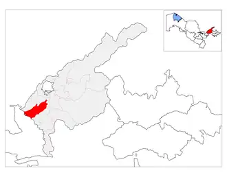 Quyichirchiq or Quy Chirchiq (Low Chirchiq) is a district of Tashkent Region in Uzbekistan. The capital lies at the city Doʻstobod.[1] It has an area of 560 km2 (220 sq mi)[2] and it had 110,100 inhabitants in 2021.[3] The district consists of one city (Doʻstobod), 2 urban-type settlements (Qoʻrgʻoncha, Paxtazor) and 9 rural communities (Gul, Ketmontepa, Maydontol, Qoʻrgʻoncha, Maʼnaviyat, Maʼrifat, Oʻzbekiston, Toshovul, Toshloq).[1]