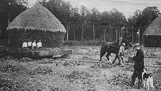 Around 1881, sugar beet producer Arthur Brandin invested in a Decauville railway with eight horse-drawn tipping lorries for the Ferme de Galande near Réau, 15 km east of the Decauville factory in Petit Bourg. As well as being a sugar beet farmer, he was also mayor of Réau and Republican Consul of the Canton of Brie-Comte-Robert from 1895 to 1912. The surface soil of his sugar beet fields consisted of clay in which fragments of siliceous sandstone were embedded, used for millstones and structural purposes. The subsoil was limestone, so the fields were often very muddy at harvest time until Brandin installed an innovatively designed drainage system.[4]