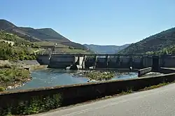 Régua Dam (Portuguese: Barragem da Régua) is a concrete gravity dam on the Douro, where the river forms the border line between the districts of Vila Real and Viseu. It is located in the municipality Peso da Régua, in Vila Real District, Portugal.